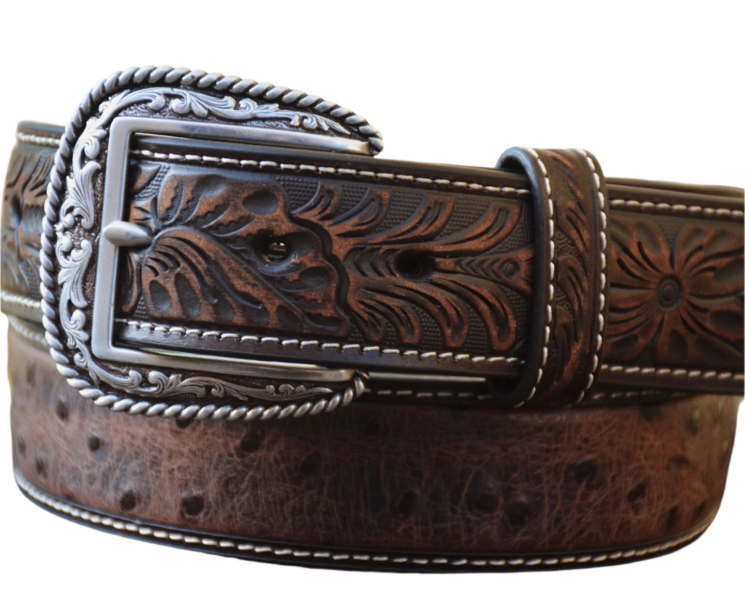 Ariat Ostrich Print Hand Tooled Belt A1017202