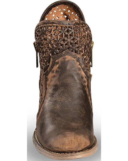 Circle G By Corral Ladies Brown Distress Cutout Round Toe Bootie Q5021