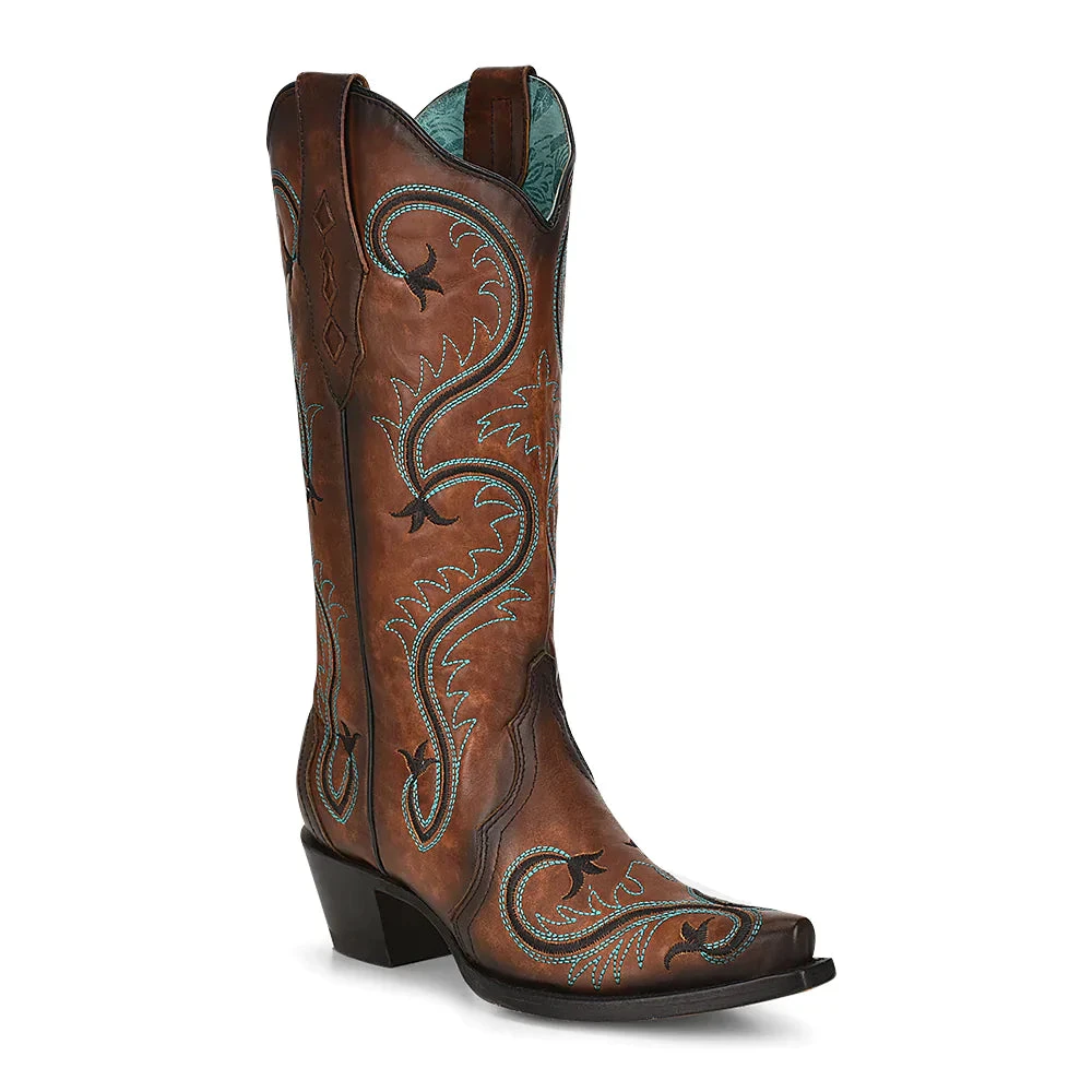 CORRAL LADIES BROWN TURQUOISE EMBROIDERY SNIP TOE BOOTS – Z5090