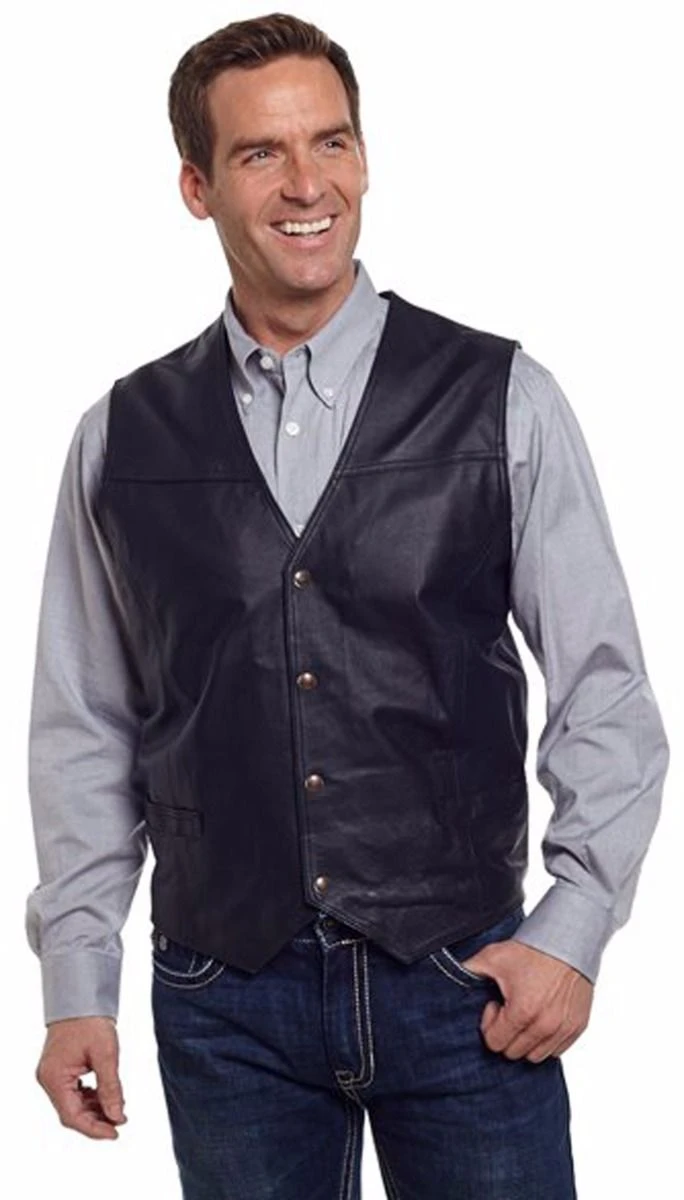 Cripple Creek Black Snap Front Boar Nappa Leather Western Mens Vest (ML1059)
