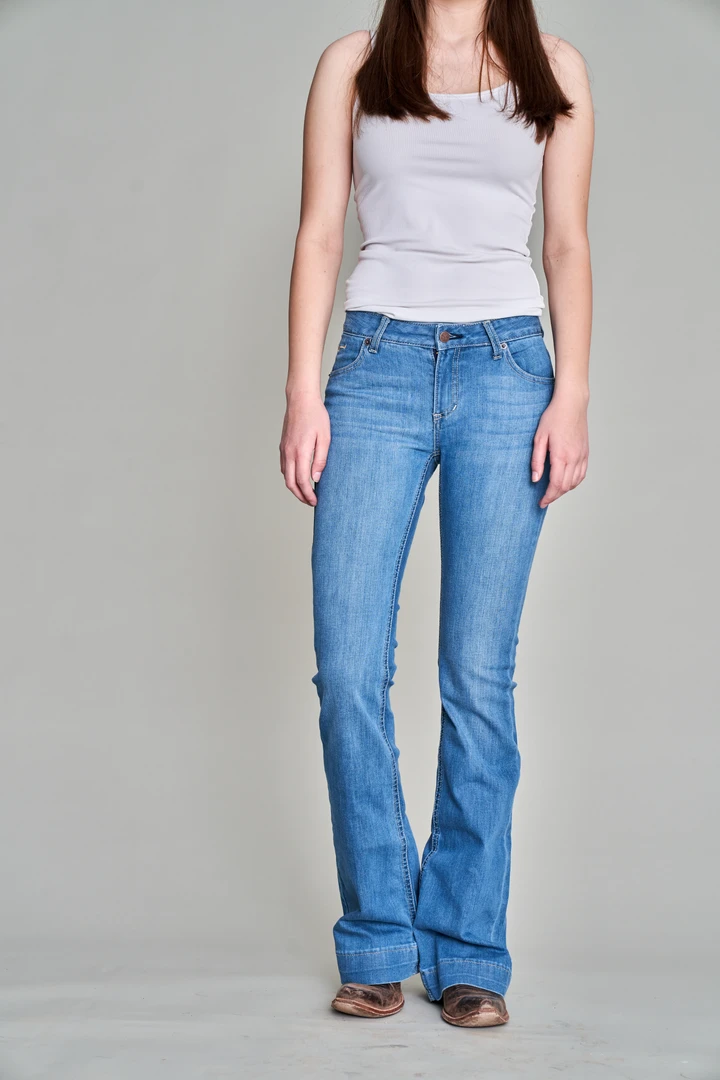 Fit: Mid-Rise, Trouser Fit, Wide Flare