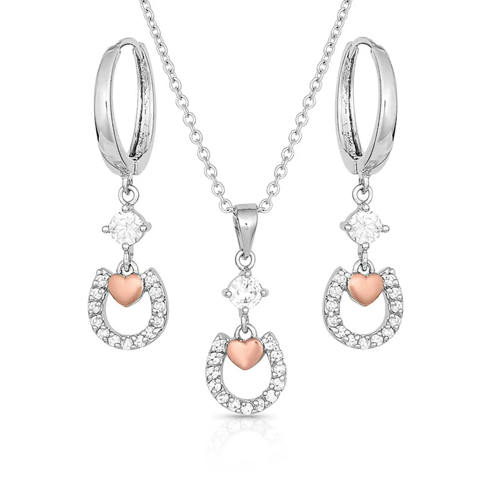Montana Silversmiths Montana Silversmith Hoofprints On My Heart Horseshoe Jewelry Set JS4308