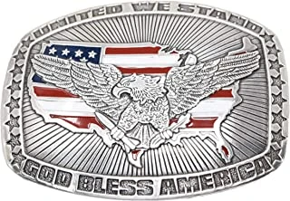 - AUTHENTIC DESIGN – This silver rectangular buckle by Crumrine has engraved ”United We Stand’ and”God Bless America’ on top and bottom with stars of left and right of the outer edge