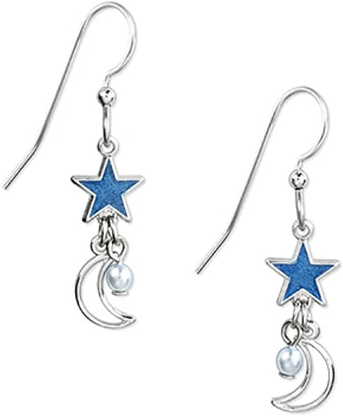 Silver Forest Star & Moon Pearlescent Earrings NE-0066A